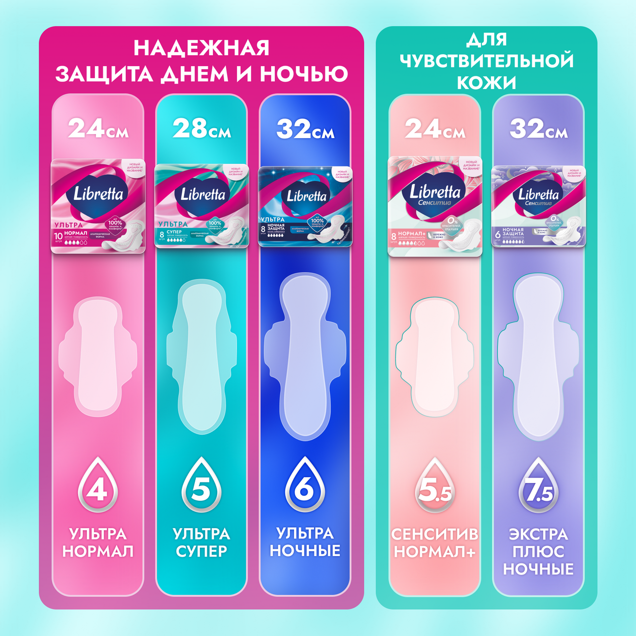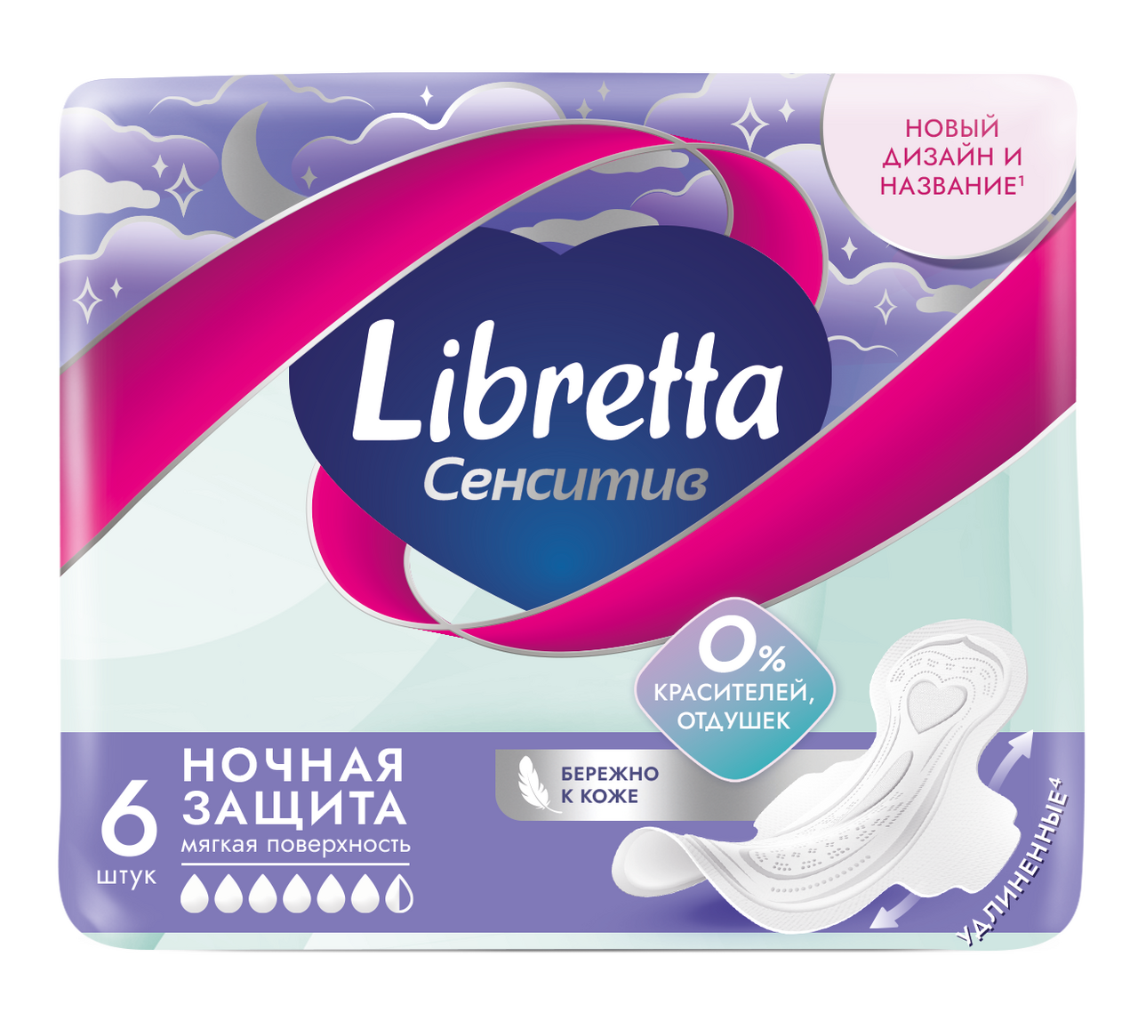 Прокладки Libretta Sensitive ночные мягкая поверхность, 6шт