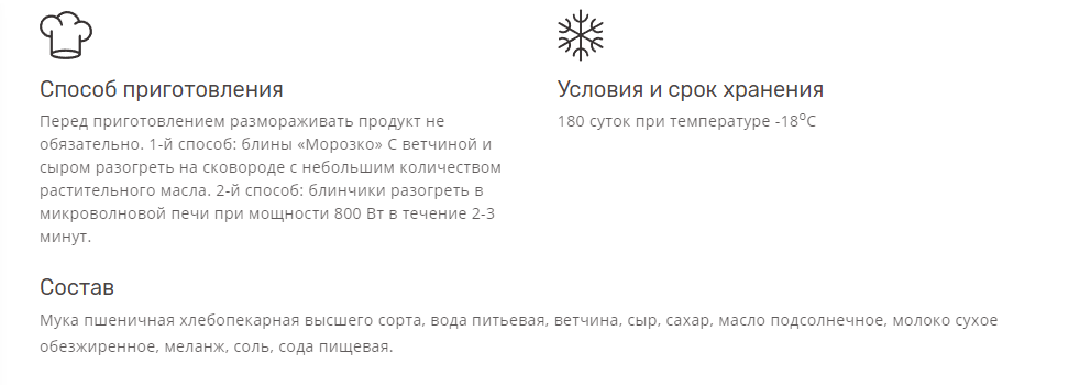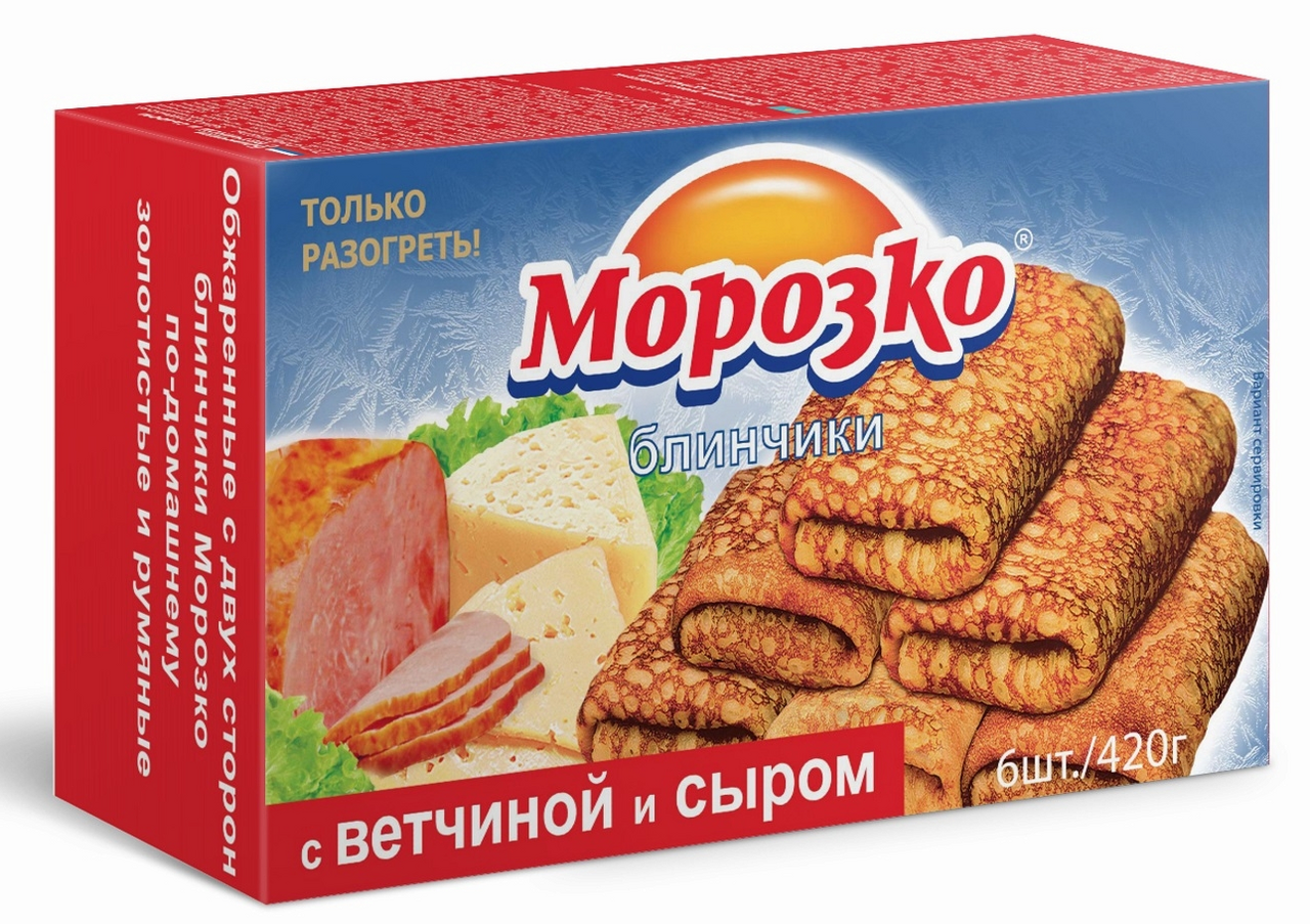 Блинчики Морозко ветчина-сыр замороженные (70г x 6шт), 420г