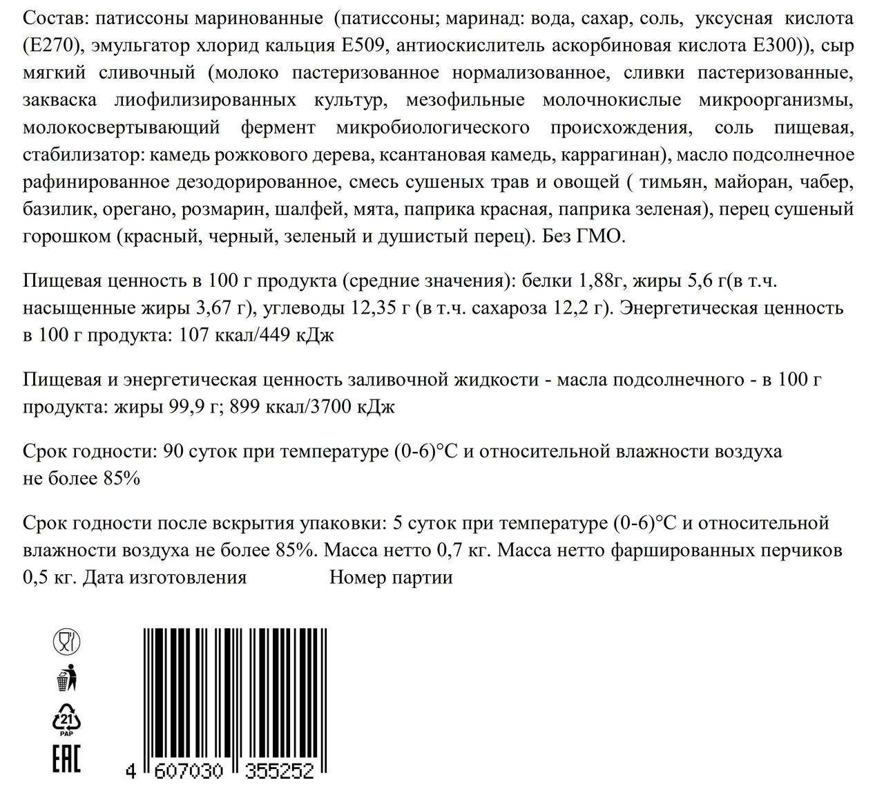 Антипасти Burenka Club патиссоны с мягким сыром, 700г