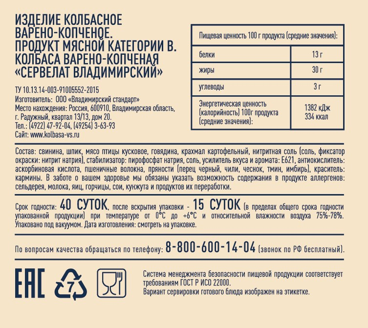 - Бренд ВЛАДИМИРСКИЙ СТАНДАРТ
