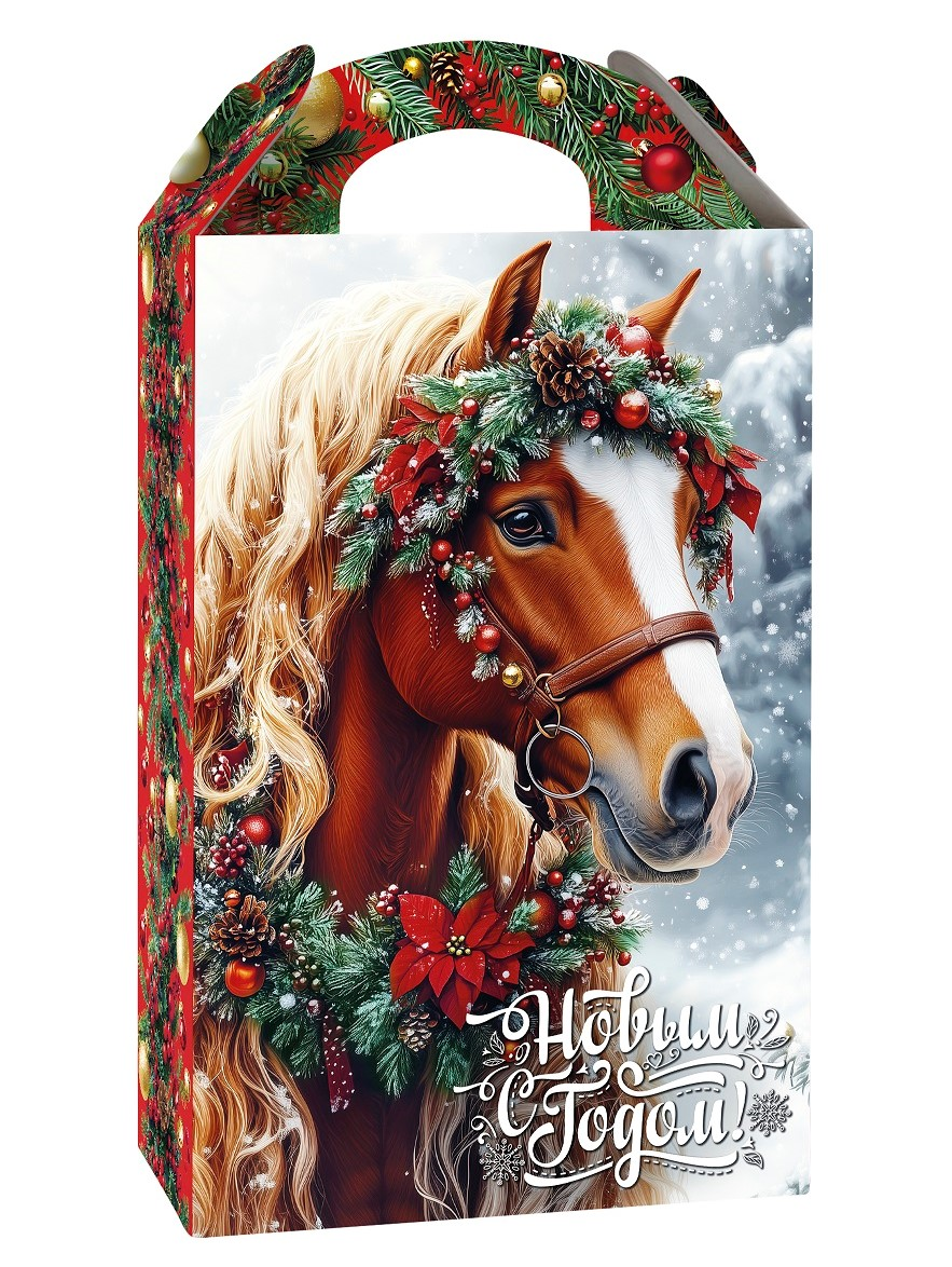 Подарок к Новому году с любимыми шоколадными конфетами и карамелью в яркой упаковке с символом наступающего года. Создан для того, чтобы вызвать настоящее восхищение и радость. Внутри этого чудесного подарка вы найдете разнообразные вкусные сладости, которые подарят вам и вашим близким незабываемые моменты. Молочный шоколад, тающая во рту карамель, нежный жевательный мармелад, шоколадные батончики, хрустящее печенье - все эти вкусности собраны воедино, чтобы удивить самого искушенного сладкоежку.