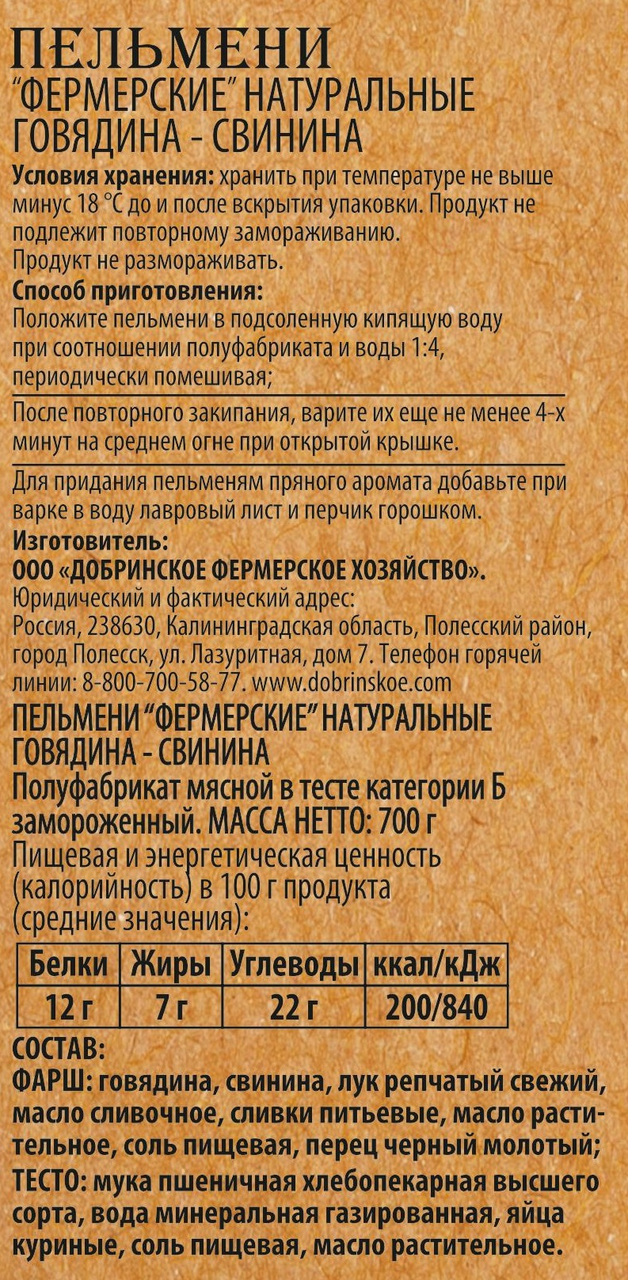 Пельмени Добринское Фх говядина и свинина, 700г