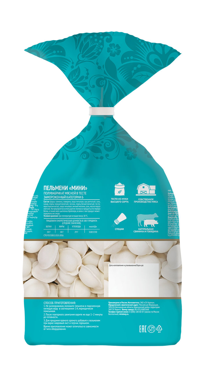 Пельмени Мини – это идеальный вкус в новом размере. Маленькие пельмени являются излюбленным блюдом у многих семей, а особенно они нравятся детям. Неизменное качество от компании Мираторг, 100% мяса собственного производства, отсутствие вредных добавок и ГМО делают эти пельмени уникальным продуктом.