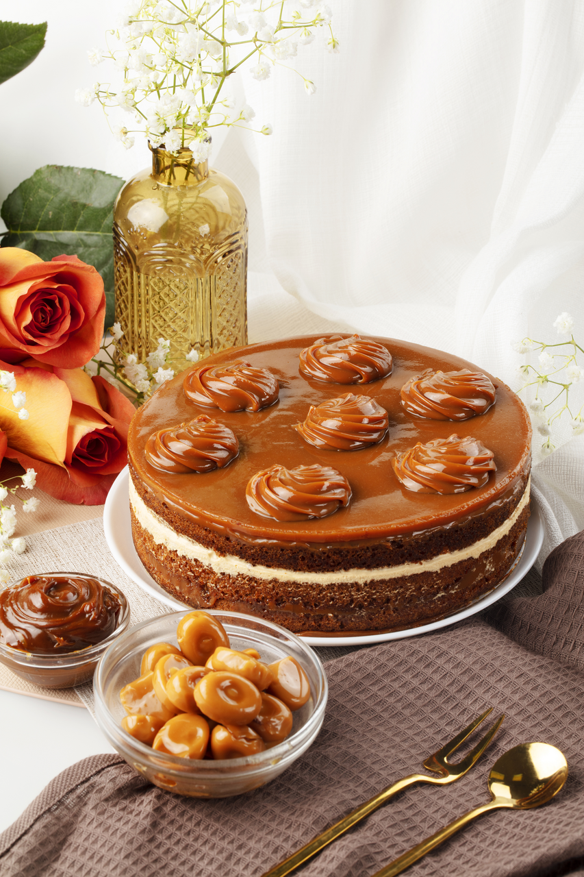 Ароматный пористый бисквит с карамельным вкусом без дополнительной пропитки в сочетании с кремом и начинкой из вареной сгущенки не оставят равнодушными сладкоежек и любителей вареной сгущенки.