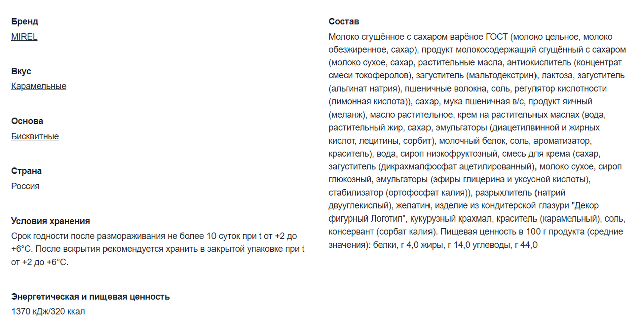 Молоко сгущённое с сахаром варёное ГОСТ молоко цельное, молоко обезжиренное, сахар, консервы молокосодержащие сгущённые с сахаром вареные молоко, сахар, заменитель молочного жира, сыворотка, загустители каррагинан, мука пшеничная, краситель сахарный колер, ароматизатор, стабилизатор ксантановая камедь, консервант сорбат калия, влагоудерживающий агент пшеничные пищевые волокна, соль, регулятор кислотности лимонная кислота, сахар, мука пшеничная в/с, продукт яичный меланж, вода, соль, масло растительное, крем для взбивания вода, заменитель масла какао нетемперируемый лауринового типа гидрогенизированное пальмовое масло, эмульгатор соевый лецитин, сироп глюкозно-фруктозный, влагоудерживающий агент сорбитовый сироп, эмульгаторы эфиры глицерина и молочной и жирных кислот, моно- и диглицериды жирных кислот, глюкоза, смесь стабилизатора и эмульгаторов целлюлоза микрокриссталлическая, ортофосфат натрия 2-замещенный, молочный белок, соль, ароматизатор, сироп низкофруктозный, смесь для крема сахар, загуститель альгинат натрия, молоко сухое, сироп глюкозный, масло растительное, эмульгаторы эфиры глицерина и уксусной и жирных кислот, моно- и диглицериды жирных кислот , стабилизаторы орто-Фосфат калия, пирофосфат натрия, носитель сульфат кальция, ароматизаторы, соль, краситель каротины, желатин, разрыхлитель натрий двууглекислый, соль, комплексная пищевая добавка сухой натуральный яблочный уксус, соль, регулятор кислотности лимонная кислота, консервант сорбат калия.