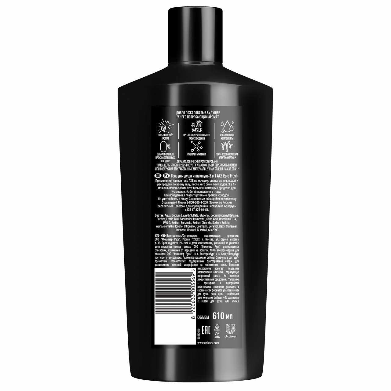 ��сли ты хочешь выглядеть на 100%, тратить минимум времени, не загромождать ванную комнату различными уходами – тебе нужен гель для душа и шампунь 3 в 1 Epic Fresh. При производстве использована технология усиленной защиты от запаха пота. Формула продукта без парабенов эффективно смывает бактерии, очищает и ухаживает за кожей и волосами пока ты в душе. Используй продукт для умывания лица. В состав входят пребиотики растительного происхождения, а также увлажняющие ингредиенты.