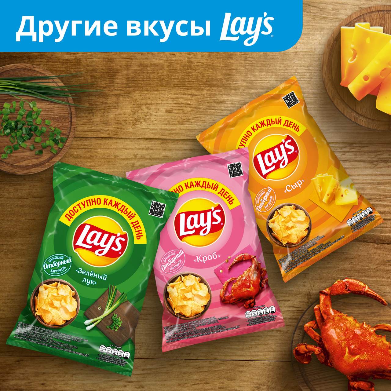 Чипсы Lay's сметана и зелень, 70 г с золотистой корочкой и приятным сливочно-пряным вкусом. Они хорошо сочетаются с острыми соусами. Создается интересное гастрономическое сочетание, которое понравится всем гостям. Подавать их можно в качестве закуски к слабоалкогольным напиткам в большой стеклянной посуде. Чипсы можно использовать и для эффектной сервировки овощных и мясных салатов и паштетов. В таком случае они получатся по��ционными. Это очень удобно — взял одну штучку и съел, не испачкав руки и посуду. Домочадцам понравится такой способ подачи. Продукт можно с удовольствием съесть при просмотре фильма или спортивного мероприятия. Чипсы исчезнут очень быстро, поэтому лучше держать про запас еще одну упаковку. Изделие подходит для быстрого перекуса, поэтому пачку можно взять с собой в путешествие или на прогулку. Чипсы производятся из отборного плотного натурального картофеля. Продаются в пластиковом пакете, сохраняющем вкусовые и потребительские свойства. Он не допускает попадания влаги внутрь и повреждения целостности продукта.