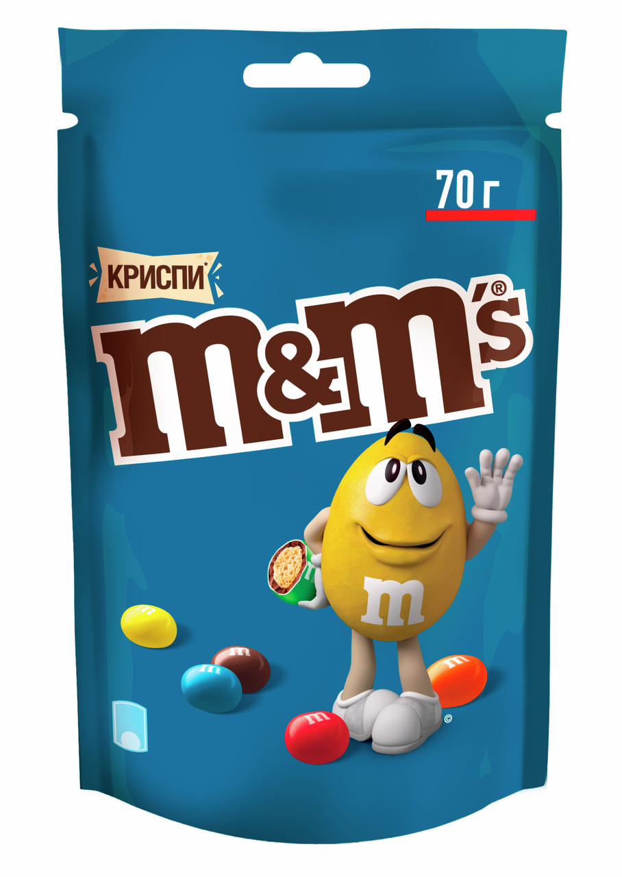 M&M’s Криспи – это драже с потрясающе хрустящим центром в молочном шоколаде, покрытые не менее хрустящей разноцветной глазурью. Размер порции идеален для того, чтобы в полной мере насладиться отдыхом после долгого дня. Вы всегда можете поделиться M&M's с друзьями! Пачка M&M’s идеально подойдет как для просмотра кино или сериала, так и для того, чтобы взять с собой в дорогу и не ждать весь день, а получить удовольствие даже от утренней поездки на работу. Возьмите одну из упаковок в офис и порадуйте себя и коллег! Попробуйте добавить M&M’s в ваши любимые десерты, чтобы удивить родных и близких или просто побаловать себя.
