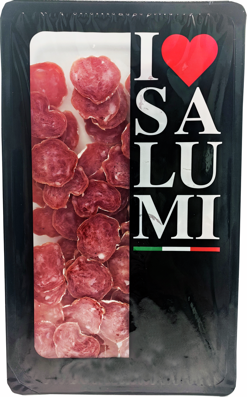 Свиной окорок, свиной шпик хребтовой, лактоза, соль, сухое обезжиренное молоко, специи (черный и белый перец), антиокислитель Е301, консервант Е250, краситель E120, стартовые культуры, благородная плесень.