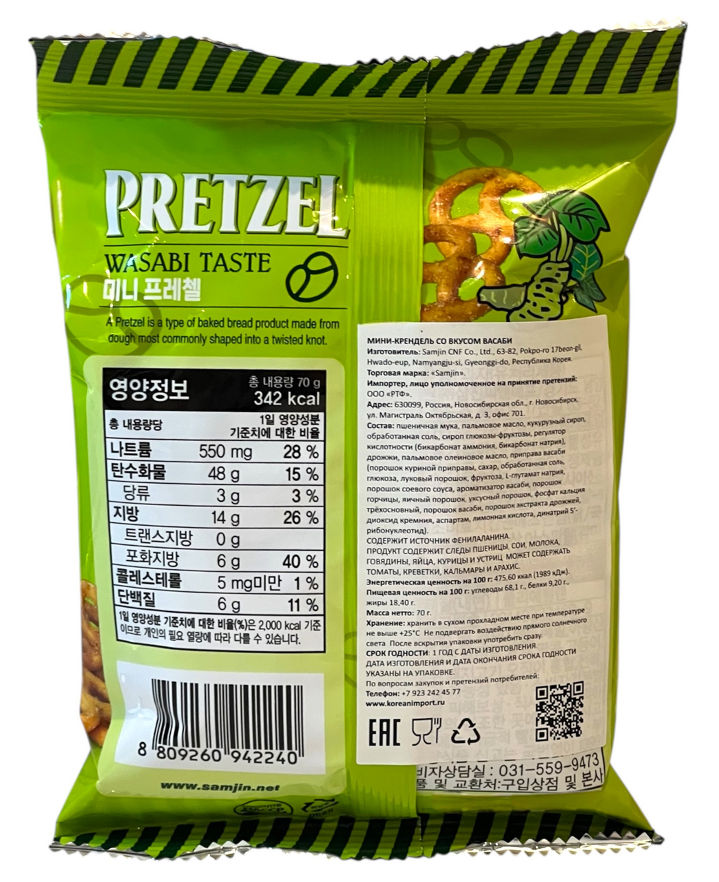 Мини-претцели с васаби - для тех, кто любит снеки с характером. Сначала - чистый звонкий хруст. Затем - солоноватая база и яркий васаби-акцент, который бодрит и моментально разгоняет аппетит. Вкус цепляет сразу и не отпускает: один кусочек, второй, третий - и пачка внезапно заканчивается. Отличный выбор, чтобы встряхнуть привычные снеки и добавить в вечер чуть больше драйва. Идеально к холодным напиткам, фильму, дороге и компании друзей.