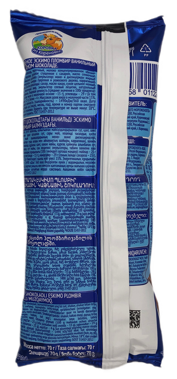Это мороженое в формате эскимо без заменителей молочного жира. Аппетитное лакомство с нежной текстурой и освежающим сладким вкусом по достоинству оценят взрослые и дети.