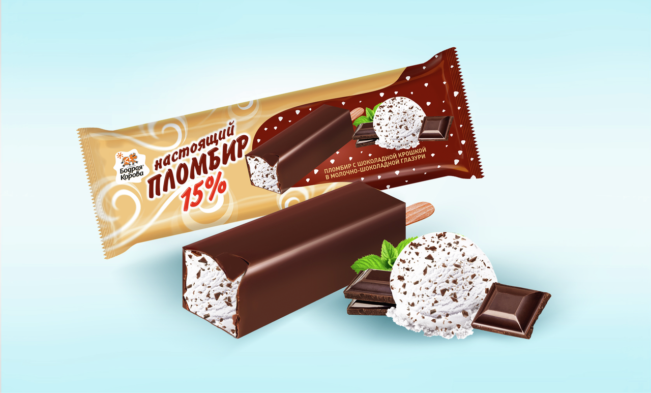 Мороженое пломбир Бодрая Корова с шоколадной крошкой эскимо 15%, 70г