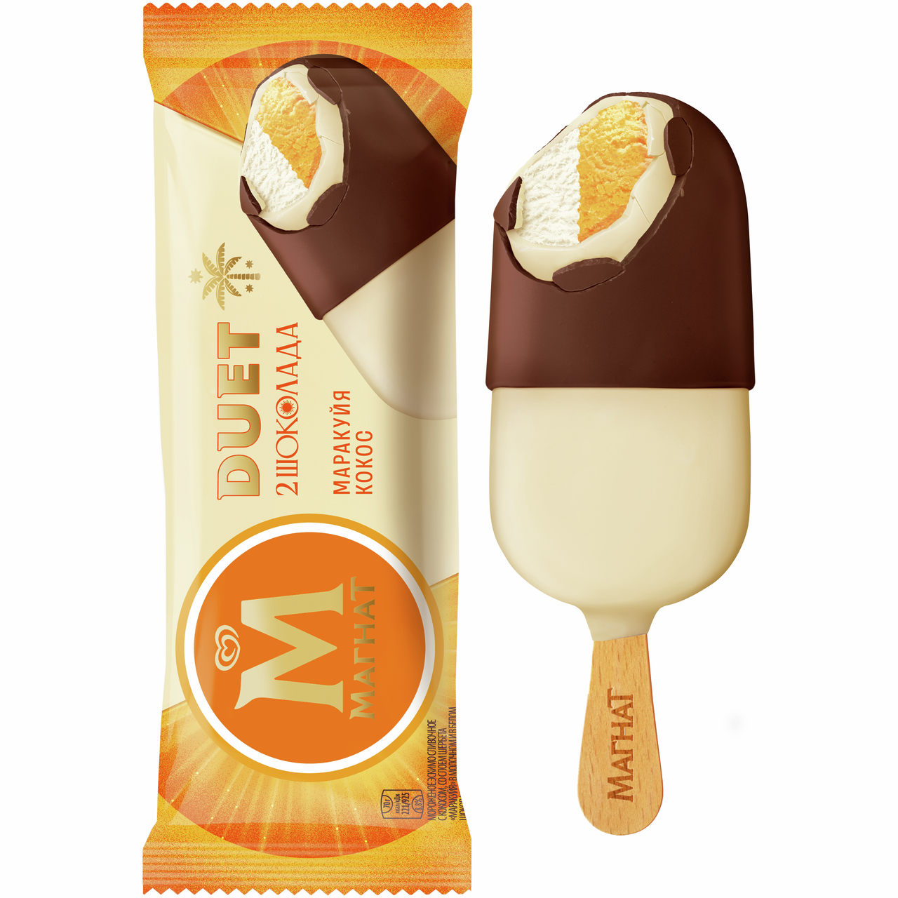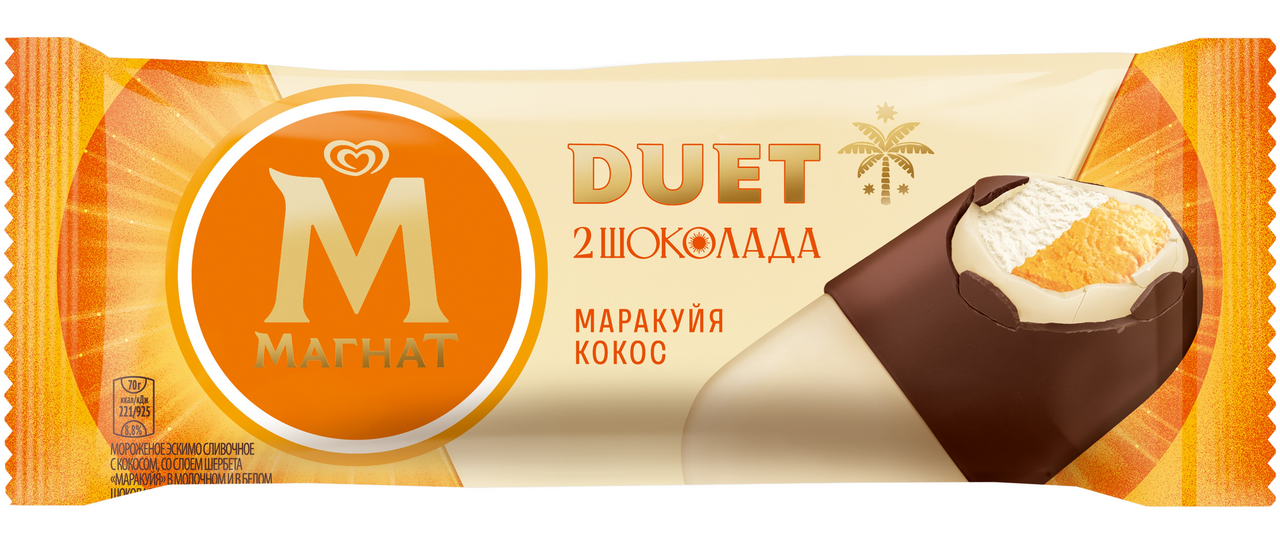 Мороженое сливочное Магнат Duet Маракуйя и кокос эскимо, 70г