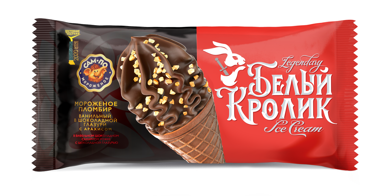 Мороженое Сампо Белый кролик Пломбир с арахисом рожок, 70г