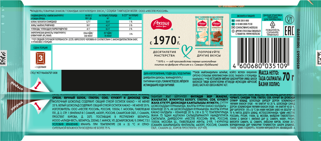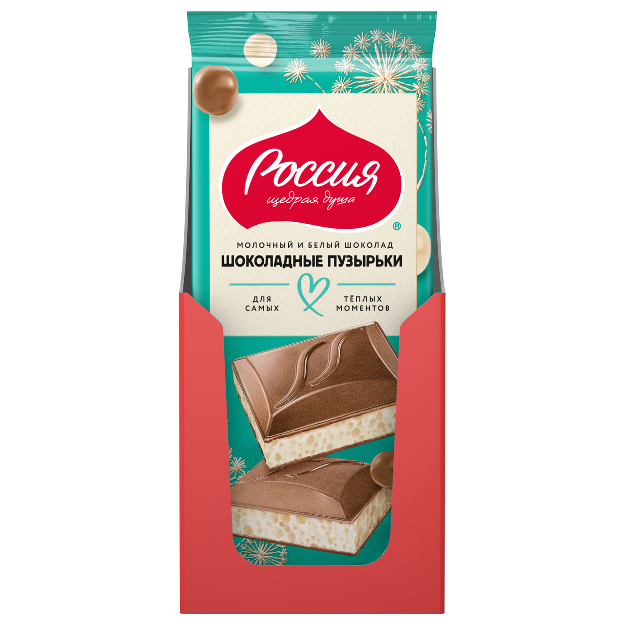 Шоколад Россия Щедрая душа молочный и белый шоколадные пузырьки, 70г