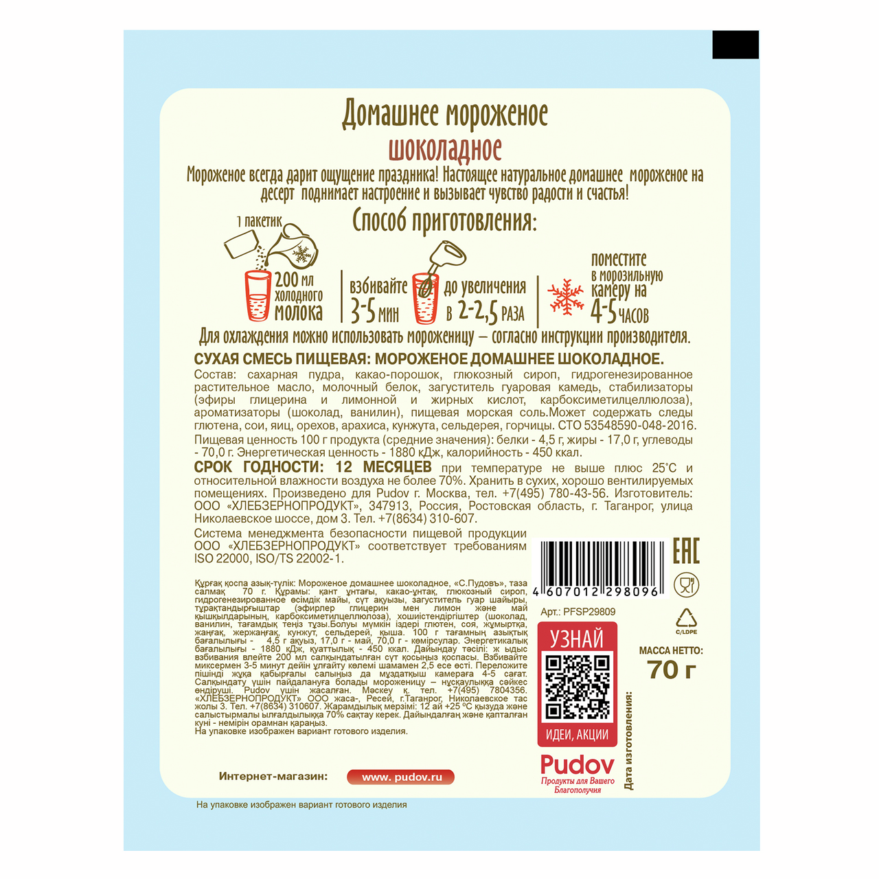 Смесь сухая С.Пудовъ мороженое домашнее шоколад, 70г