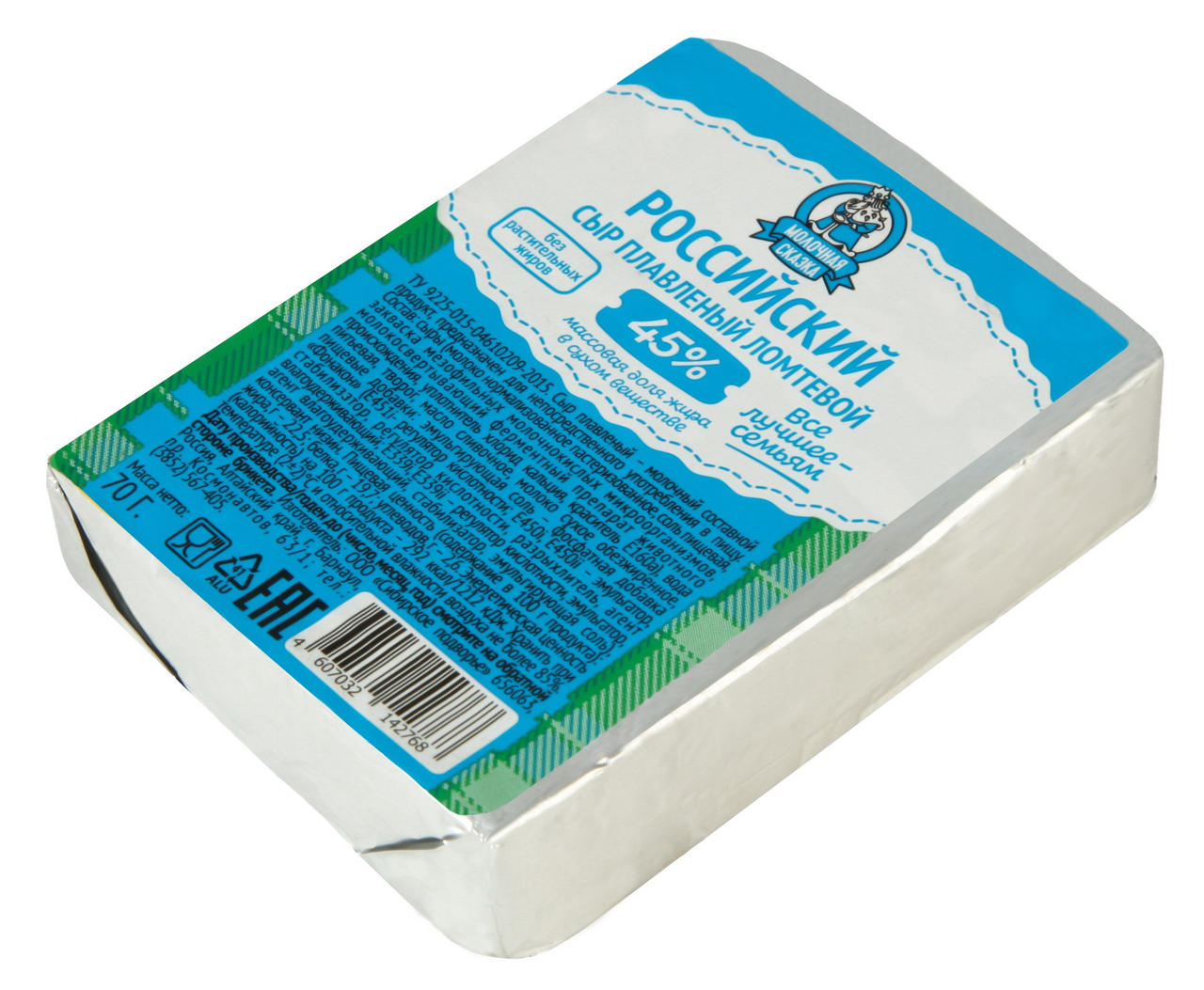 Сыр Молочная сказка Российский плавленый ломтевой 45%, 70г