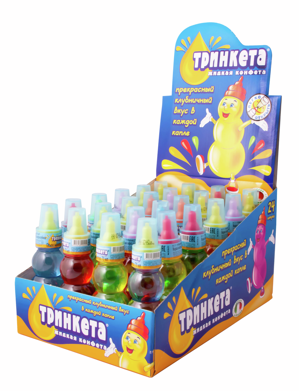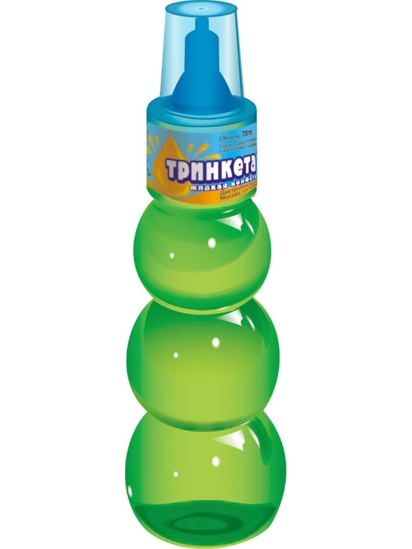Жидкая конфета "Тринкета" – это оригинальный продукт итальянского производства, который перевернул все представления о сладостях! До сих пор, уже в течение 15 лет, он остается необычным и желанным для детей продуктом. Специально для "Тринкеты" была разработана уникальная бутылочка с "умной соской, благодаря которой жидкость из нее не выливается даже в перевернутом состоянии. Бутылочка закрывается многоразовым колпачком, поэтому конфету можно пить постепенно. Бутылочки из-под "Тринкеты" многофункциональны, и дети с удовольствием используют их в своих играх, например, в качестве кеглей при игре в боулинг, лупы при чтении, материала при изготовлении поделок.