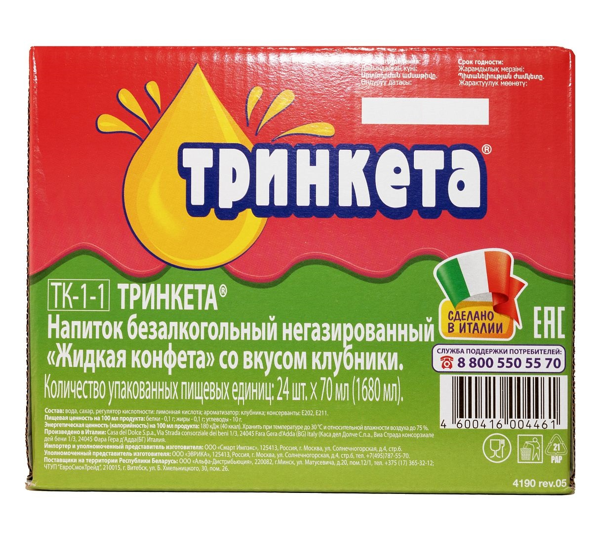 Жидкая конфета Тринкета со вкусом клубники безалкогольный негазированный напиток, 70г х 24 шт