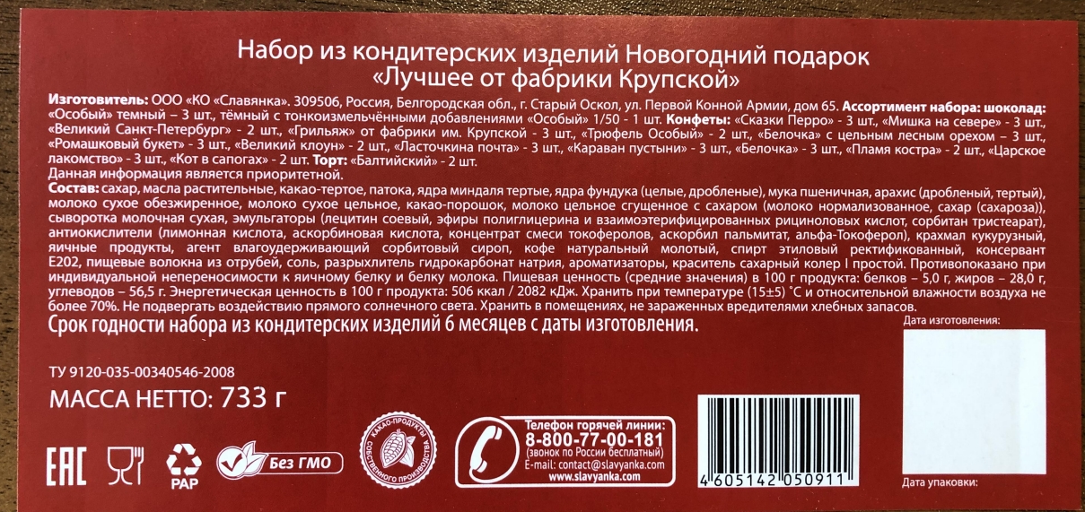 Подарок новогодний Кондитерская фабрика Крупской Лучшее от фабрики, 733г