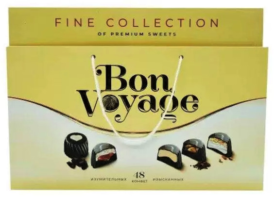 Набор конфет Bon Voyage бежевый ассорти, 740г ассорти конфет на любой самый взыскательный вкус: желейно-фруктовые, сливочные, пралиновые в сочетании с орехами, кофе, клюквой, кокосовой стружкой. Упаковка - готовый презент для любого повода. Вы не только насладитесь вкусом, но и получите эстетическое удовольствие. Состав набора из 24 конфет: Магия Топ - с желейно-фруктовой начинкой со вкусом клюквы, какаосодержащей начинкой, начинкой с ароматом ванилина и воздушными рисовыми шариками; Пражские- с нежной сливочной начинкой со вкусом ванили и пломбира в комбинации с золотистым арахисом и воздушной кокосовой стружкой; Рижские - конфеты с традиционной темной пралиновой начинкой в сочетании с нежной ванильно-сливочной начинкой в гармонии с золотистым, дробленным обжаренным арахисом; Валентинка Топ - конфеты с двойной начинкой Амаретто - Кофе; Фон Дук-конфеты в темной изысканной глазури, из коллекции конфет ЭЛИТ, с классическим сочетанием темной какао начинки с ядром фундука.