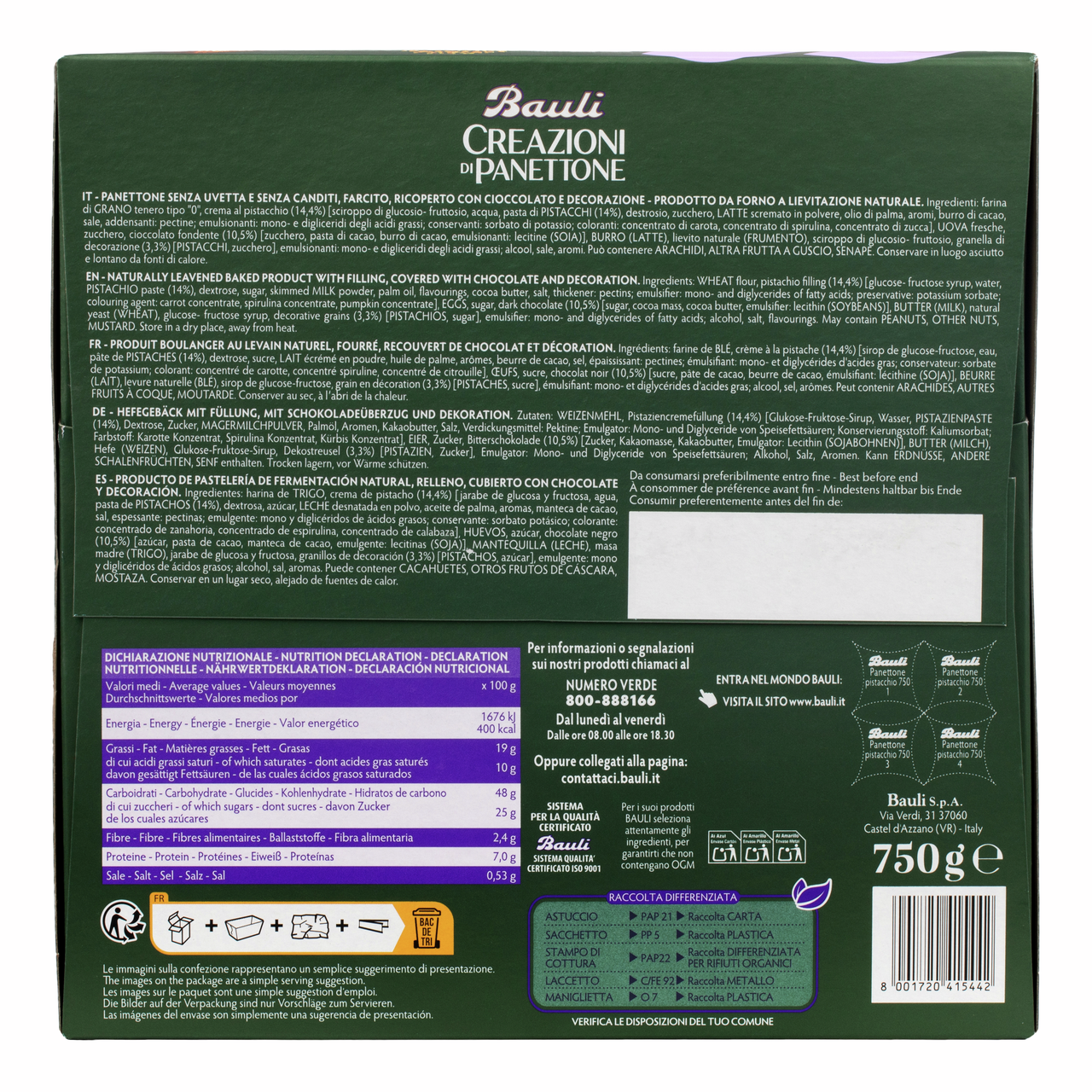 Кулич Bauli Пасхальный с кремовой начинкой со вкусом фисташки, 750г