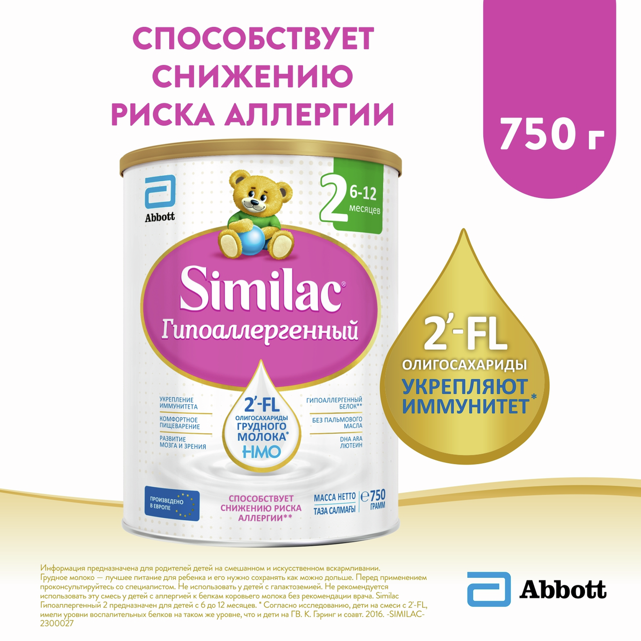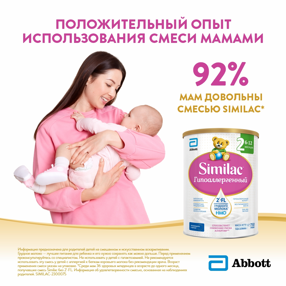 Смесь молочная детская Similac 2 Гипоаллергенный с 6 месяцев, 750г