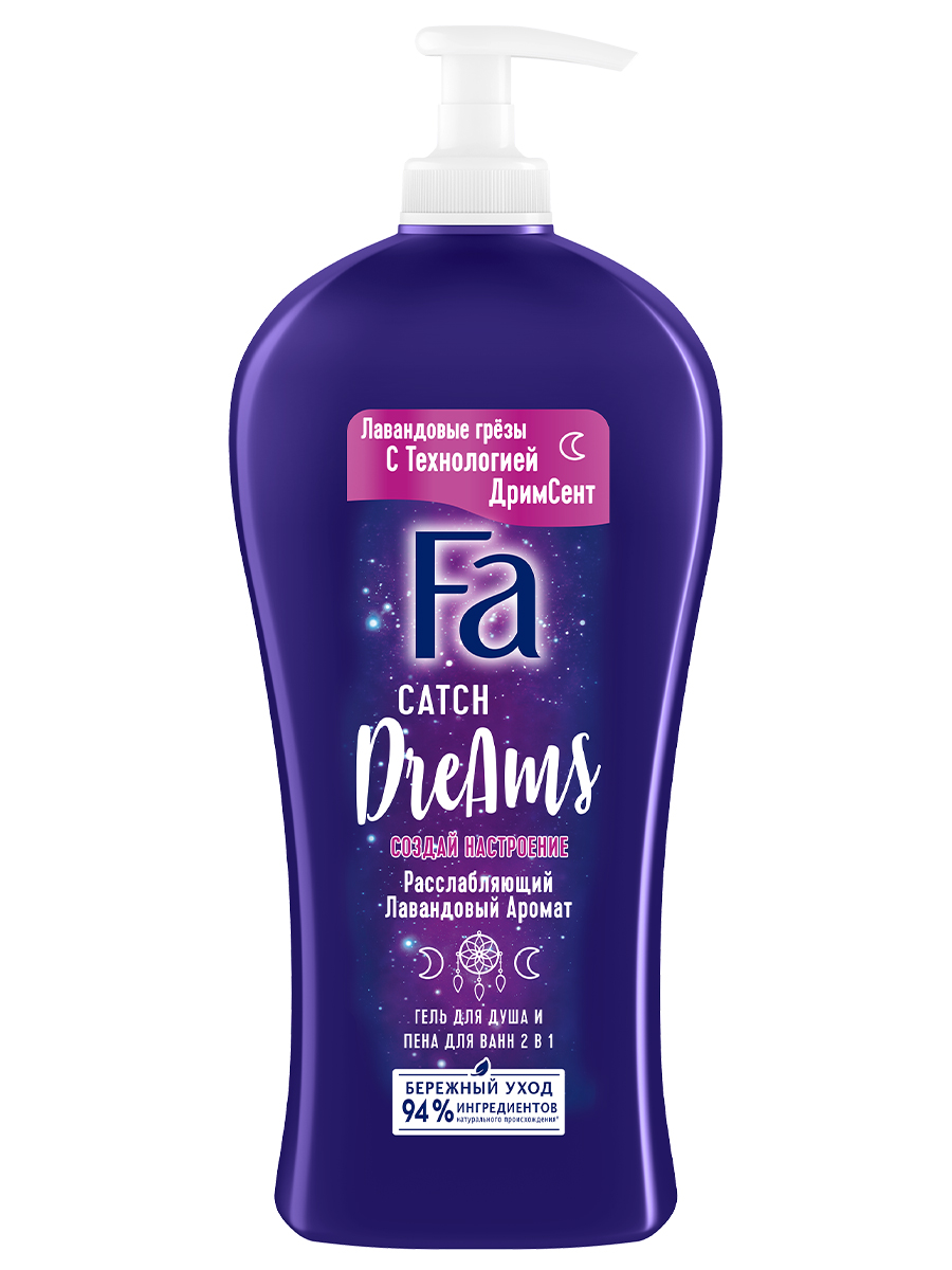Гель для душа и пена для ванн Фа Catch Dreams Расслабляющий лавандовый аромат 2в1, 750мл