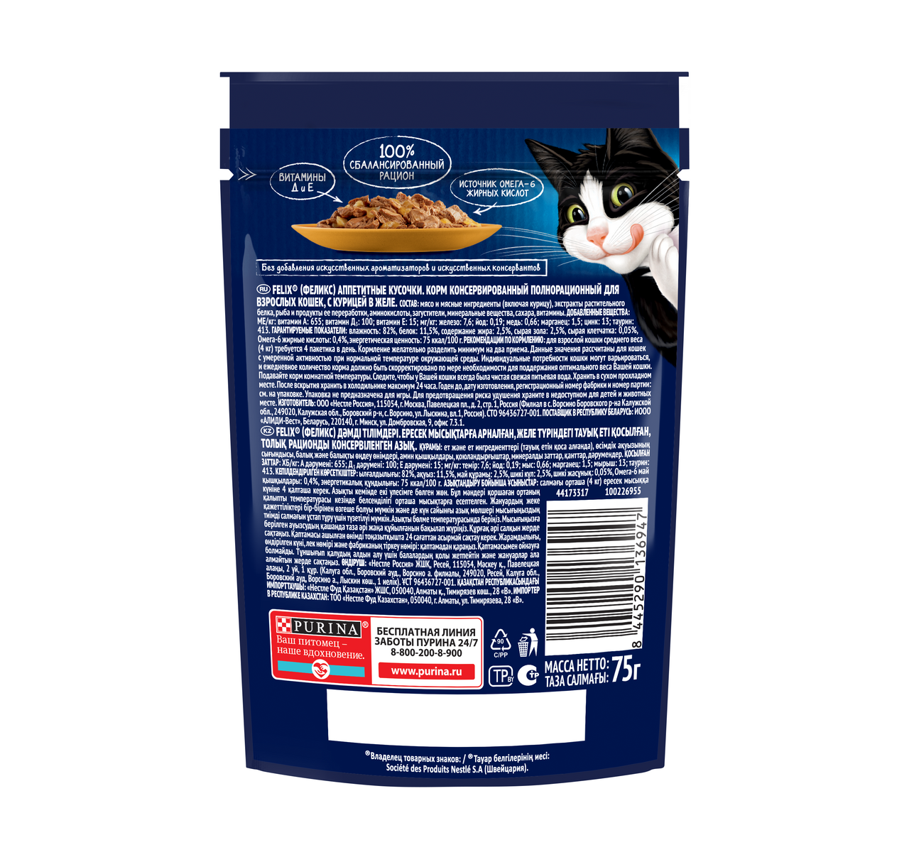 Каждый котик желает наслаждаться совершенно особенным кормом, у которого будет такой аппетитный вид и аромат, словно Вы приготовили его сами. Каждый пакетик корма для взрослых кошек Аппетитные кусочки содержит нежные кусочки в сочном желе – вкуснятину, от которой кота за уши не оттащишь. Эксперты , разрабатывая влажные корма для домашних любимцев, создали корм для взрослых кошек Felix Аппетитные кусочки — специально для Вашего любителя вкуснятины. Влажный корм для кошек Felix Аппетитные кусочки — полнорационный, содержит все необходимое для здоровой активной долгой жизни.