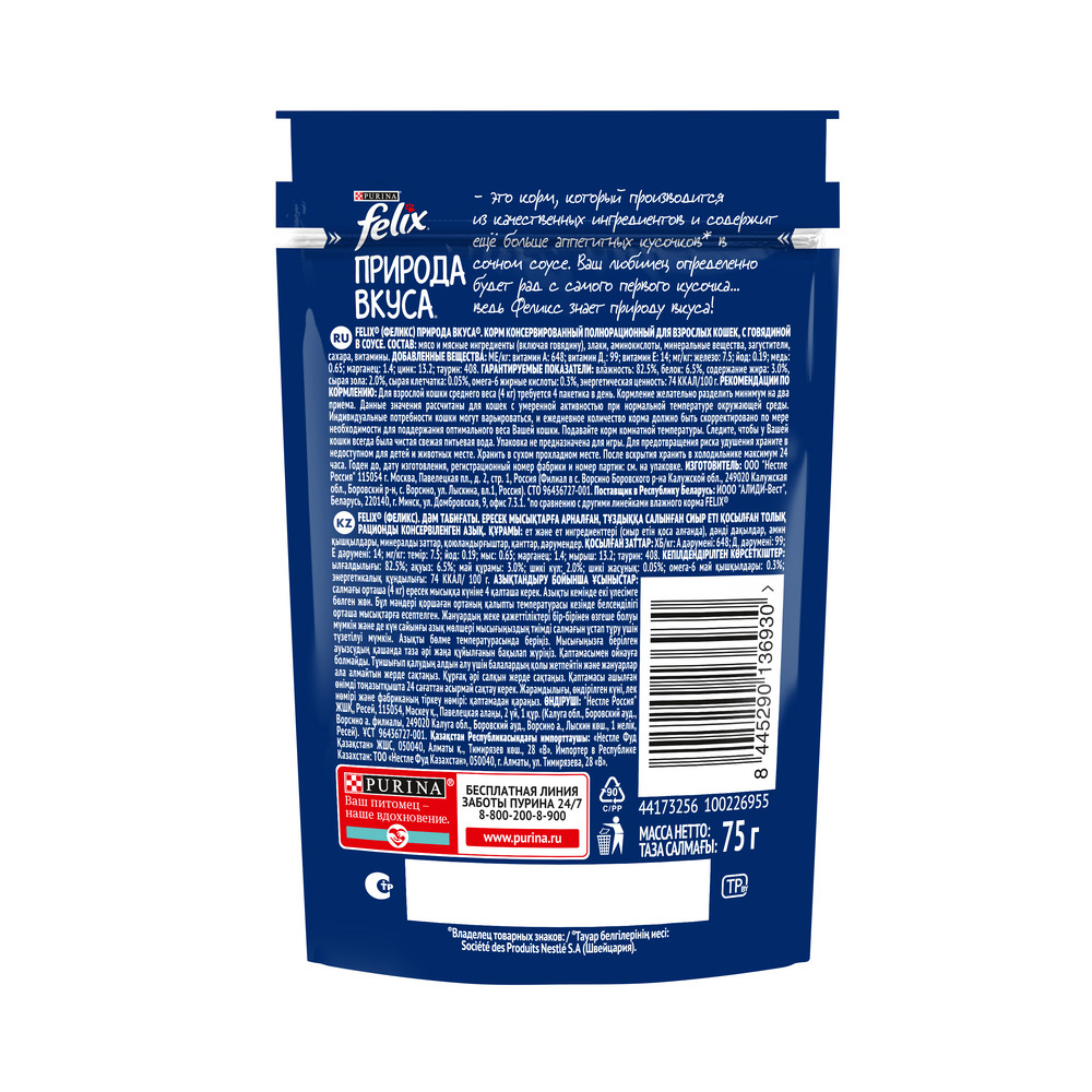 Животные инстинкты Вашего питомца не обманешь: он точно даст Вам понять, что именно ему по вкусу, и безошибочно определяет, где с аппетитным кормом можно получить и энергию для активной здоровой жизни.Эксперты Purina, разрабатывая влажные корма для домашних питомцев, создали насыщенный корм для взрослых кошек Felix Природа вкуса с аппетитными кусочками в сочном соусе. Полнорационный влажный корм обеспечит Вашего любимца всеми необходимыми питательным веществами. Корм для кошек Felix не содержит искусственных красителей. 100% сбалансированный рацион. Баланс минералов. Содержит витамины Д и Е. Источник Омега-6 жирных кислот.