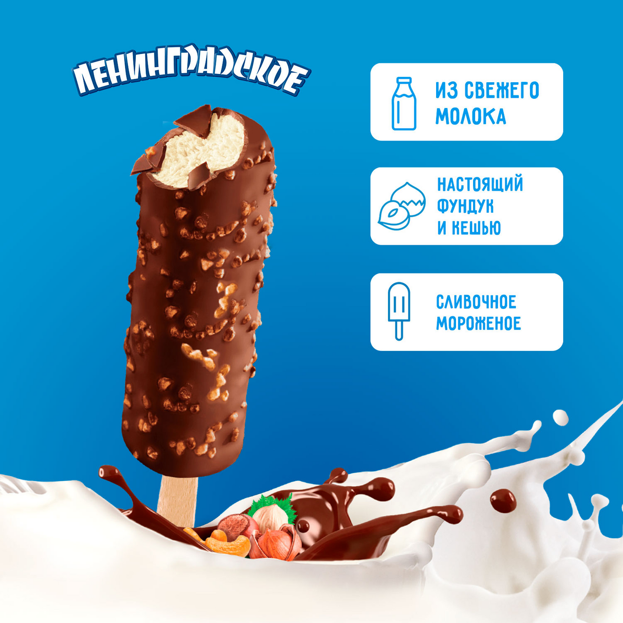 Мороженое сливочное Ленинградское Ванильное с фундуком и кешью эскимо ГОСТ 10%, 75г