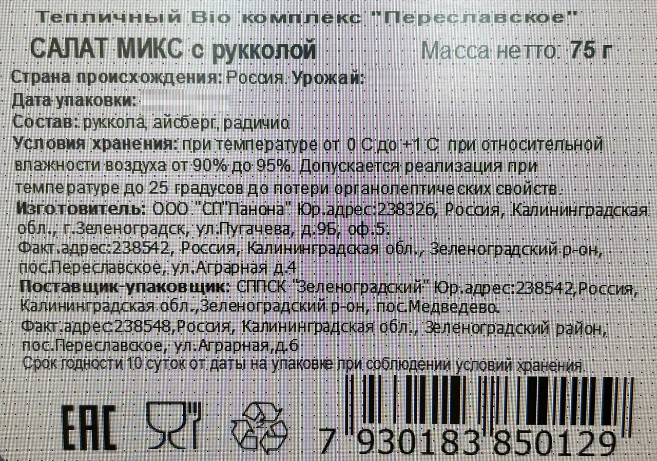 - Тип Салатная смесь