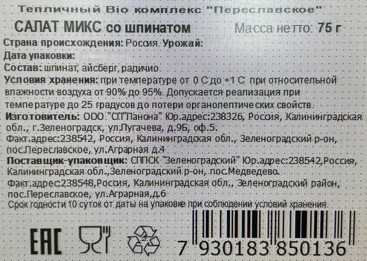 - Тип Салатная смесь