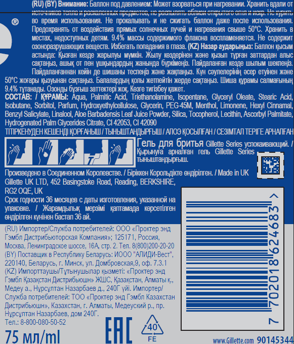 - Комплектация Гель для бритья - 1 шт.