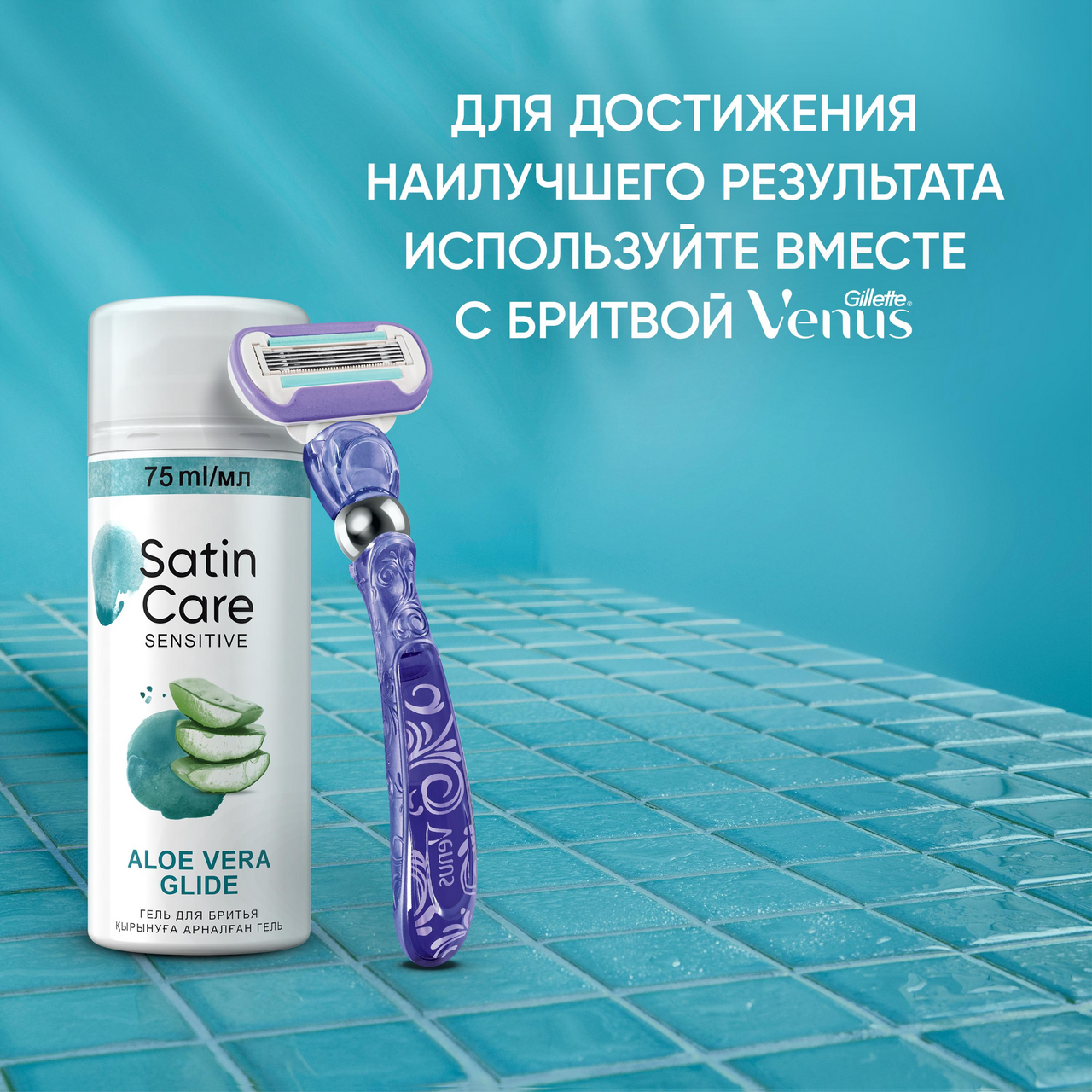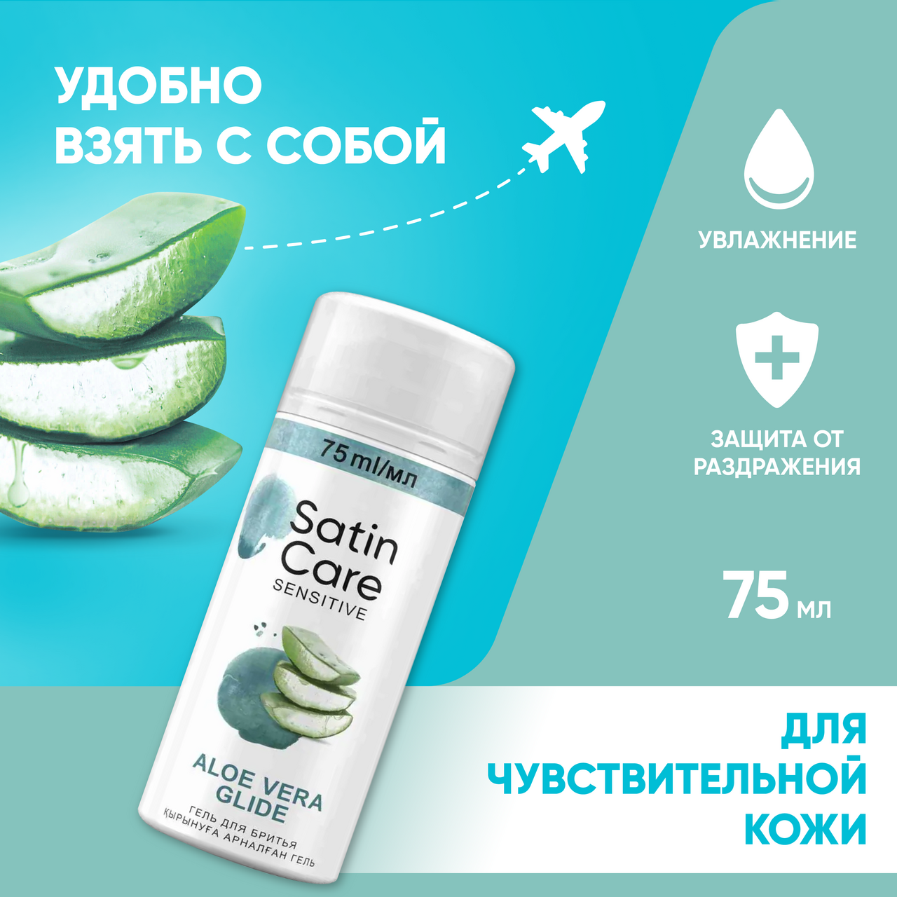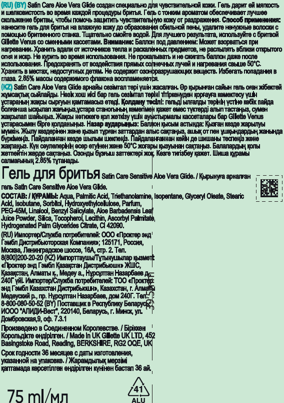 Satin Care Aloe Vera Glide создан специально для чувствительной кожи. Гель дарит ей мягкость и шелковистость во время каждой процедуры бритья. Гель с тонким ароматом обеспечивает лучшее скольжение бритвы, чтобы помочь защитить чувствительную кожу от раздражения. Способ применения: нанесите гель для бритья на влажную кожу до образования обильной пены, удалите ненужные волоски с помощью бритвенного станка. Тщательно смойте водой. Для лучшего результата, используйте с бритвой Gillette Venus со сменными кассетами. Предназначен для женщин с чувствительным типом кожи и обеспечивает гладкое и комфортное бритье. Входящие в состав компоненты эффективно увлажняют, питают и препятствуют возникновению раздражений, при этом делая кожу мягкой, эластичной и гладкой. Благодаря густой кремообразной текстуре гель легко наносится и обеспечивает идеальное скольжение бритвы, предотвращая порезы и царапины. Данное средство содержит ингредиенты натурального происхождения и обладает приятным ароматом алоэ вера. Этот гель способствует быстрому восполнению и эффективному поддержанию естественного уровня увлажнения кожи.