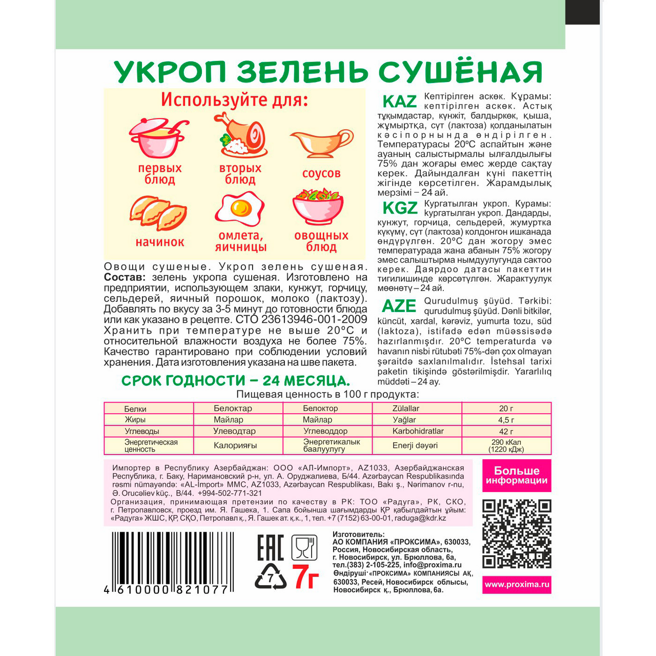 Укроп зелень сушеная.