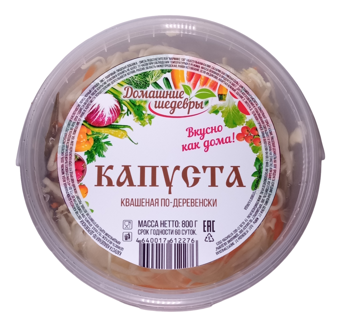 Капуста квашенная по-деревенски ТМ Домашние шедевры шинкованная, 800г