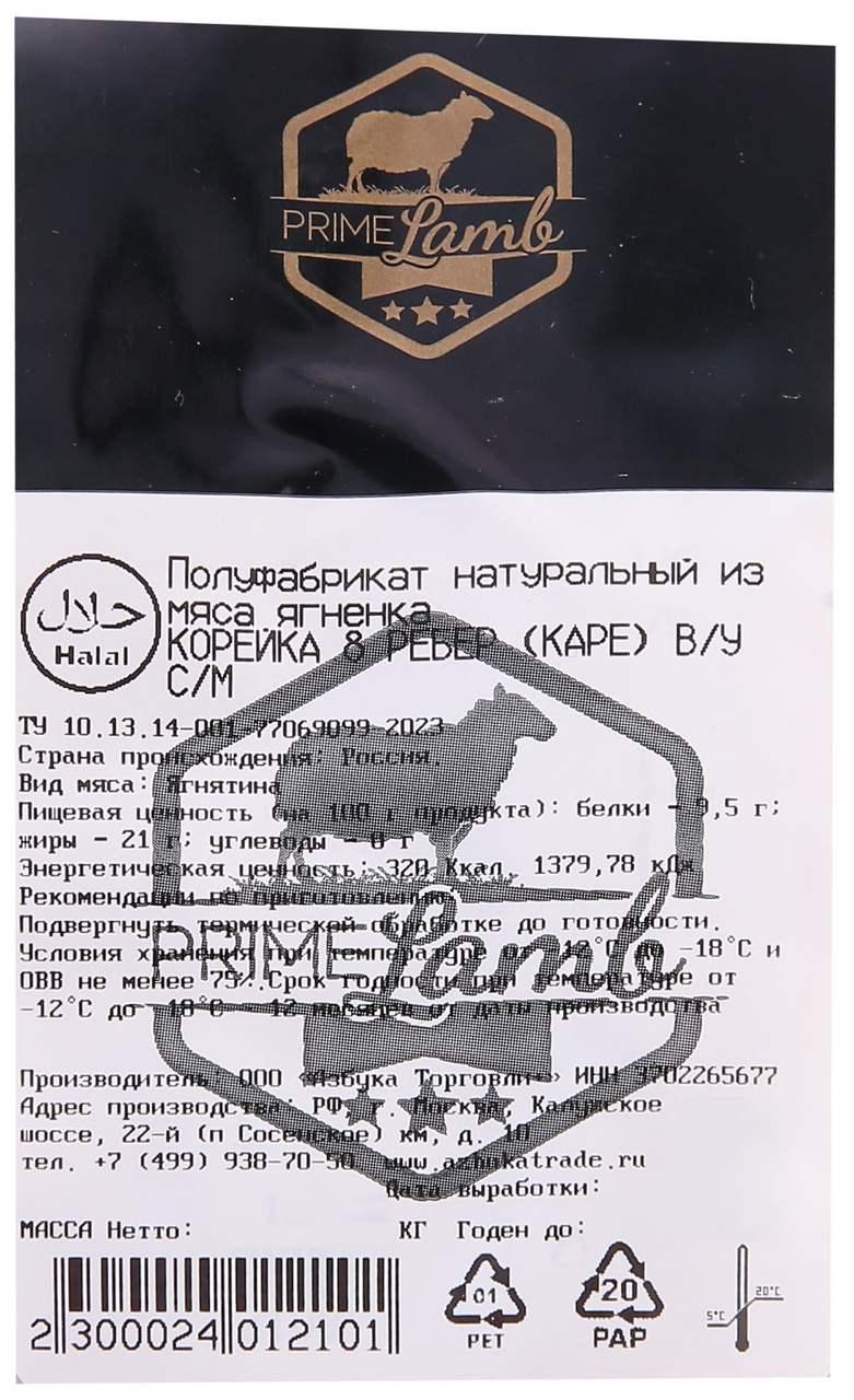 Корейка ягненка Prime Lamb Халяль 8 ребер замороженная, ~800г