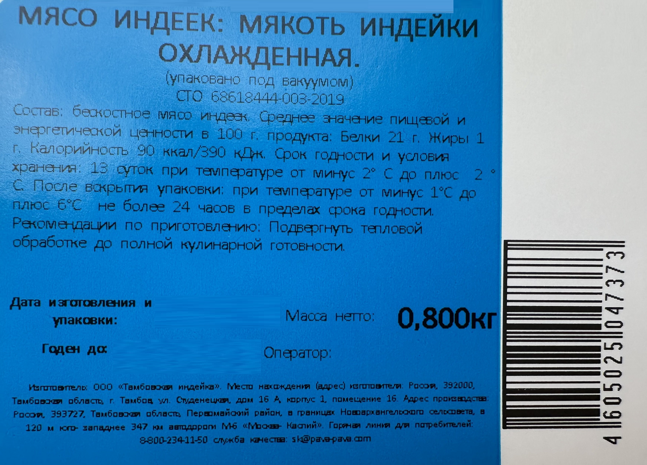 Мякоть индейки Пава Пава охлажденная, 800г