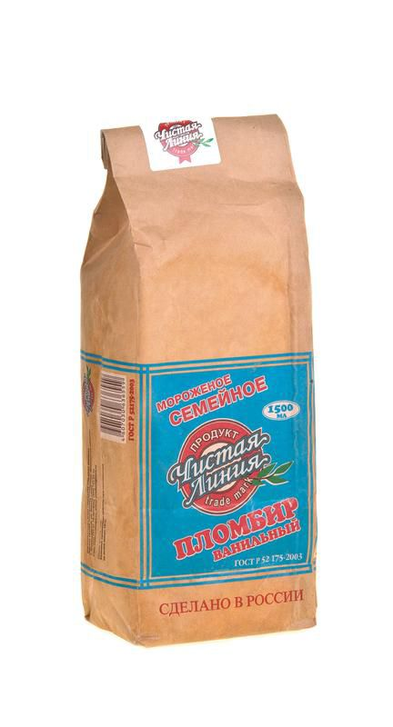 Мороженое ЧИСТАЯ ЛИНИЯ Пломбир в мешке, 800 г