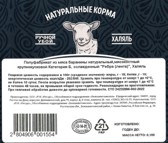 Ребра из мяса баранины An-Noor Халяль охлажденные, ~800г