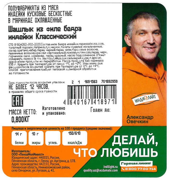 Вернуться назад Шашлык из филе бедра индейки Индилайт Классический охлажденный, 800г Оставить отзыв Артикул: 54838 Поделиться В избранное Раскупили Сообщить о поступлении Посмотреть похожие Узнать наличие в магазинах Бренд ИНДИЛАЙТ Страна-производитель Россия Подробнее Описание Ароматное мясо в оригинальном маринаде. Филе бедра индейки в маринаде с сушёными томатами и специями. Его можно сразу приготовить на гриле или мангале. Полное описание Характеристики Бренд ИНДИЛАЙТ Страна-производитель Россия Раскупили Сообщить о поступлении Посмотреть похожие Узнать наличие в магазинах
