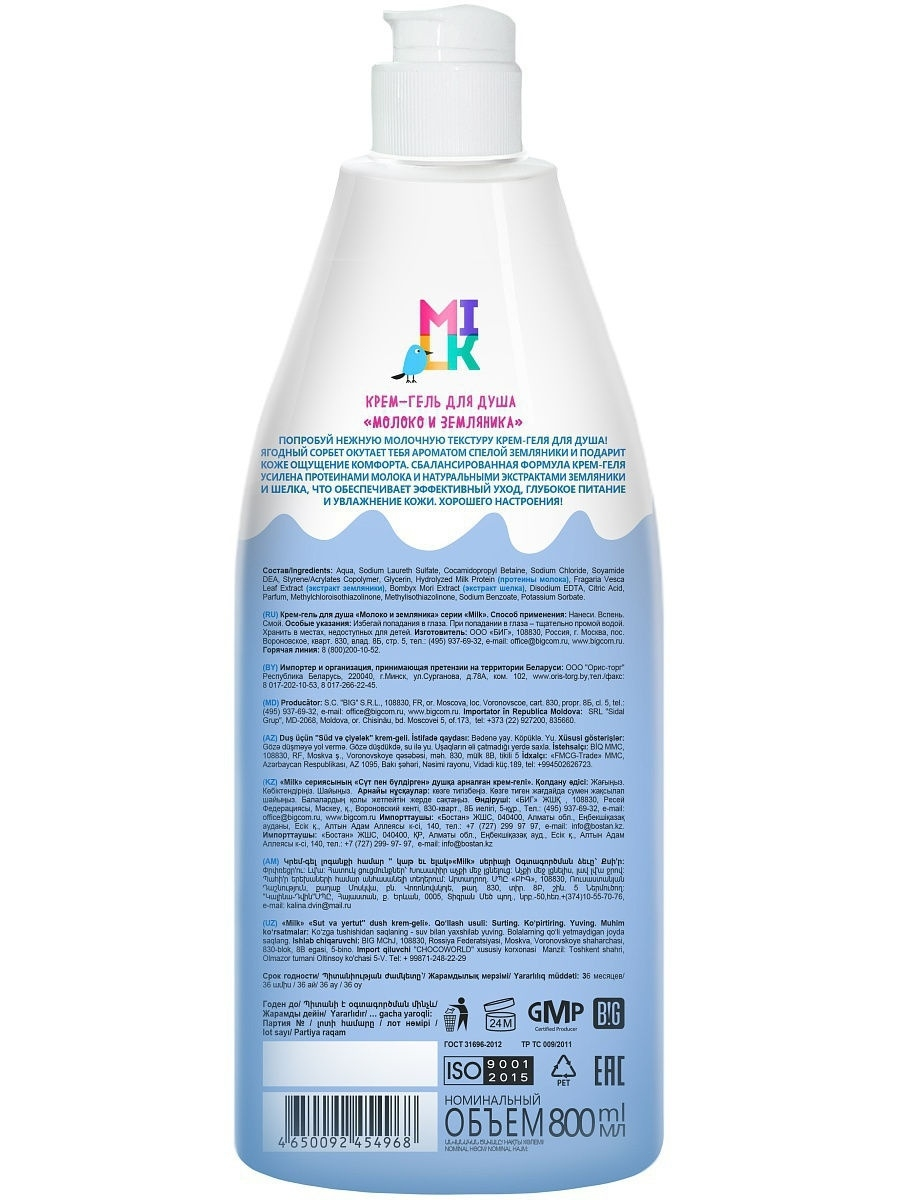 Крем-гель для душа Milk для душа молоко и земляника, 800мл