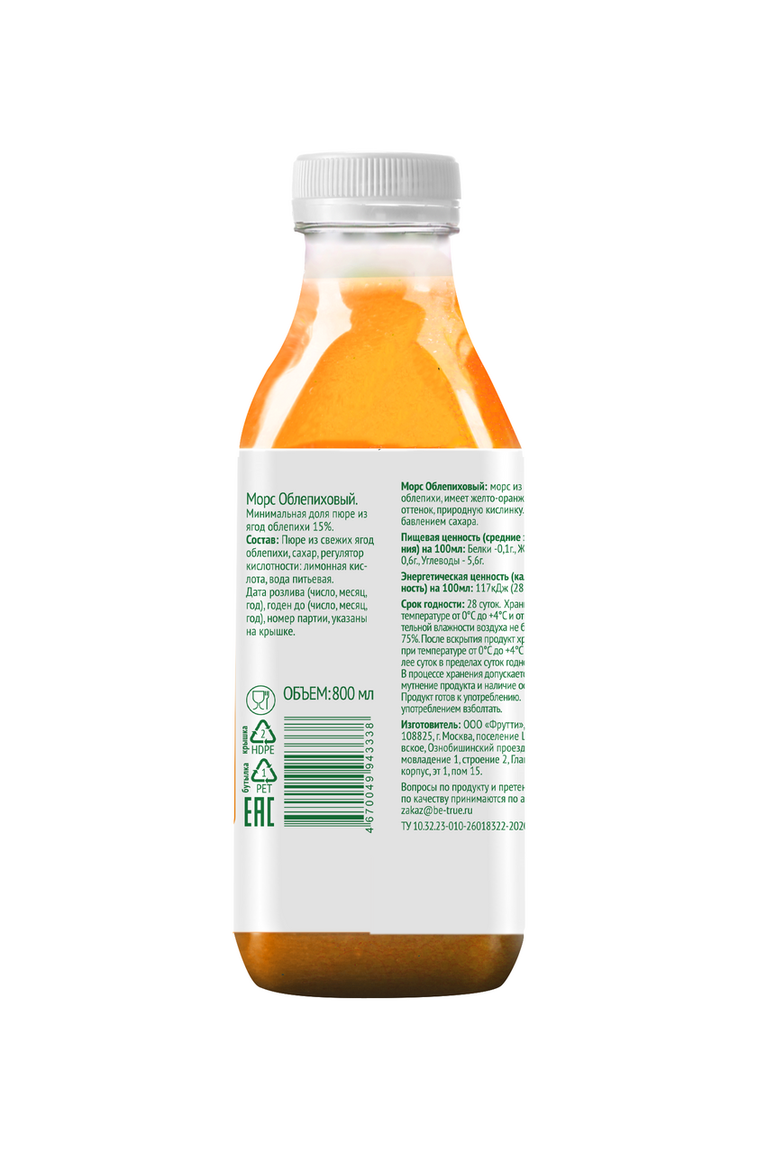 Пюре из свежих ягод облепихи, сахар, регулятор кислотности: лимонная кислота, вода питьевая.