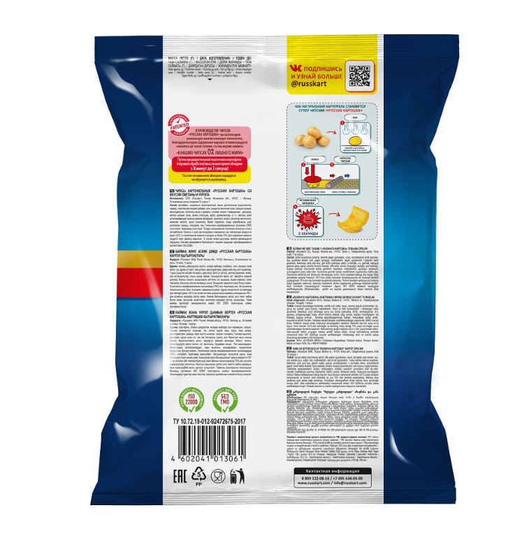Чипсы Русская картошка сметана-укроп, 80 г никого не оставят равнодушными. Если подать их к просмотру футбольного матча или любимого фильма, то время пролетит незаметно. Большой упаковки хватит на всю дружную компанию. Единственный минус — чипсы исчезнут очень быстро, поэтому лучше держать про запас еще одну. Хорошо сочетаются со сливочными и острыми соусами, создавая интересный вкусовой тандем. Подавать их можно в качестве закуски к слабоалкогольным напиткам или газировке, а также к горячему чаю или какао. Сочетание с безалкогольными напитками понравится детям, которые попросят добавки. Перед подачей продукт лучше аккуратно пересыпать в стеклянную посуду, чтобы получить удовольствие от насыщенного золотистого цвета. Чипсы ��роизводятся из отборного плотного натурального картофеля. Продаются в пакете, сохраняющем вкусовые и потребительские свойства. Он не допускает попадания влаги внутрь и повреждения целостности продукта.