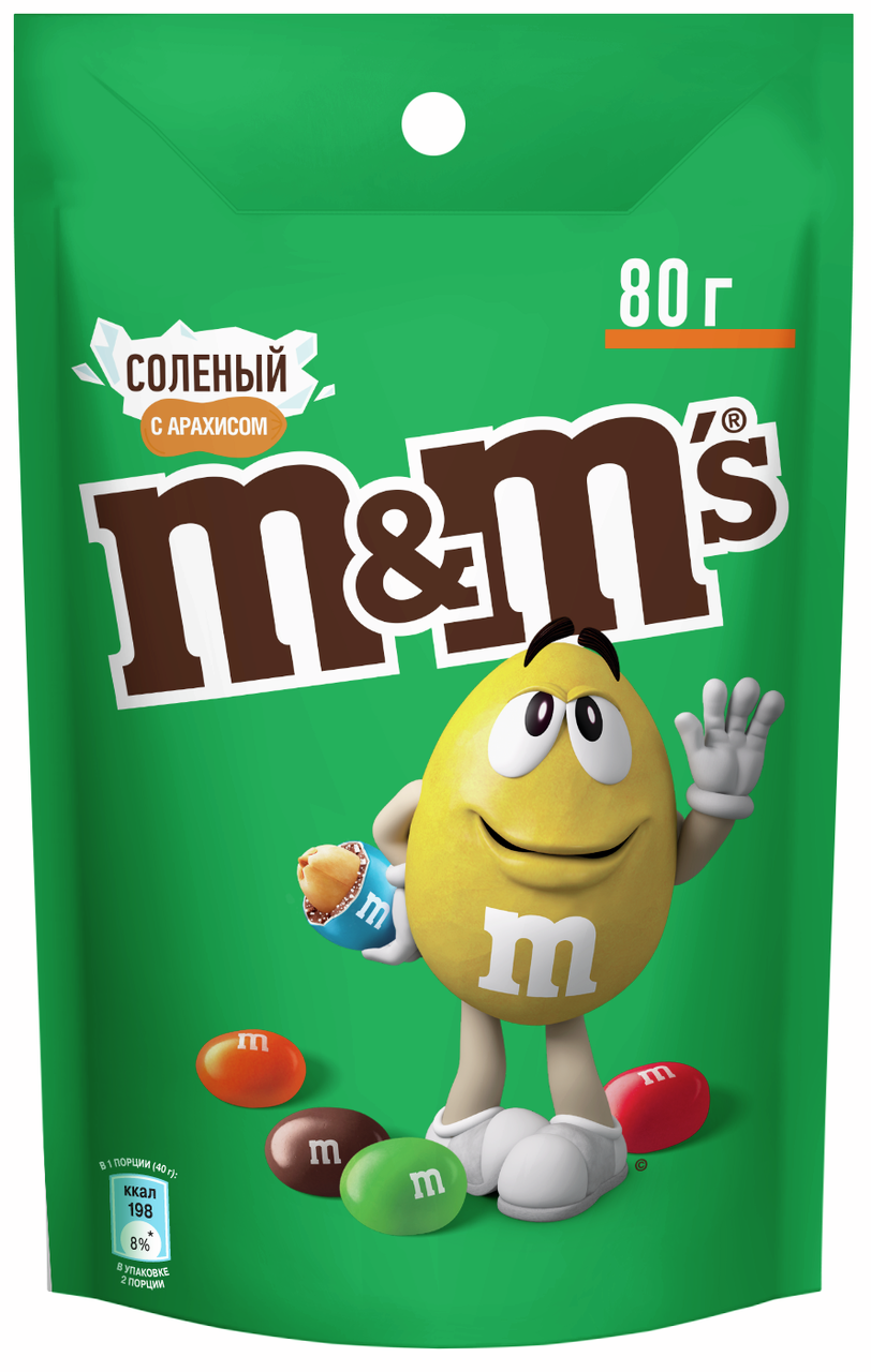 Восхитительно вкусный жареный арахис с солью, покрытый аппетитным молочным шоколадом и красочной хрустящей глазурью. - Немного арахиса + много вкуса = безудержное веселье. Берите на любой праздник пару пачек вкусного угощения M&M's с арахисом в молочном шоколаде! - Размер порции идеален для того, чтобы в полной мере насладиться отдыхом после долгого дня. - Вы всегда можете поделиться M&M's с друзьями! - Пачка M&M’s идеально подойдет как для просмотра кино или сериала, так и для того, чтобы взять с собой в дорогу и не ждать весь день, а получить удовольствие даже от утренней поездки на работу. - Возьмите одну из упаковок в офис и порадуйте себя и коллег! - Попробуйте добавить M&M’s в ваши любимые десерты, чтобы удивить родных и близких или просто побаловать себя.