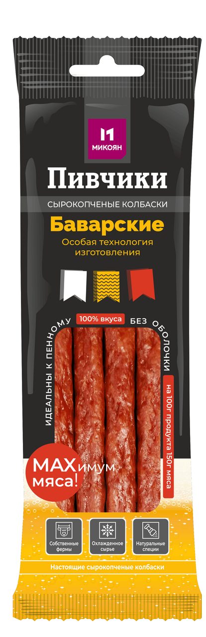 Тонкие сырокопченые колбаски, изготовленные из высококачественного мясного сырья с добавлением традиционных баварских специй, несомненно оценят по достоинству ценители пенного напитка и любители спортивных баталий.