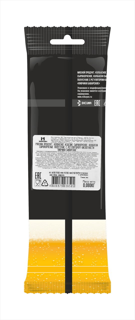 Колбаски Микоян Пивчики баварские сырокопченые, 80г