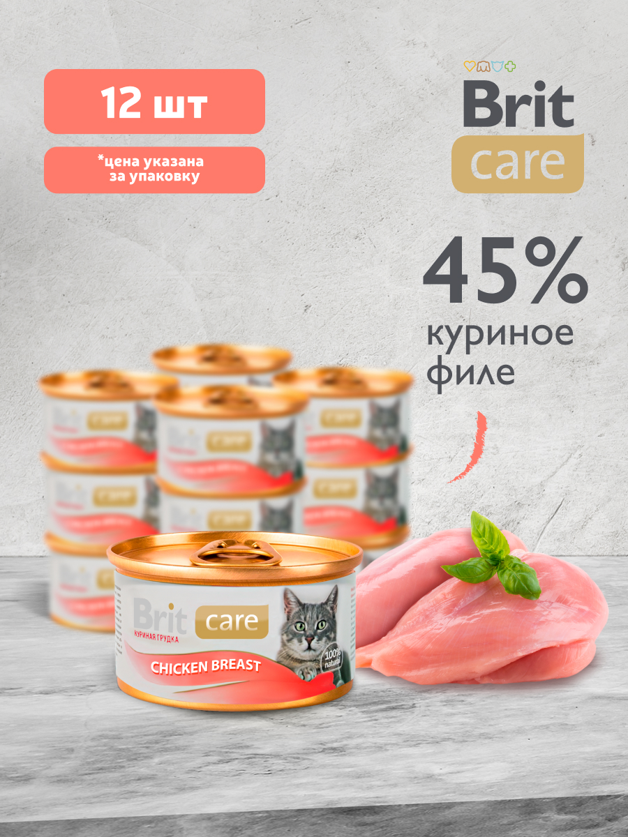 Корм влажный Brit для кошек куриная грудка, 80г