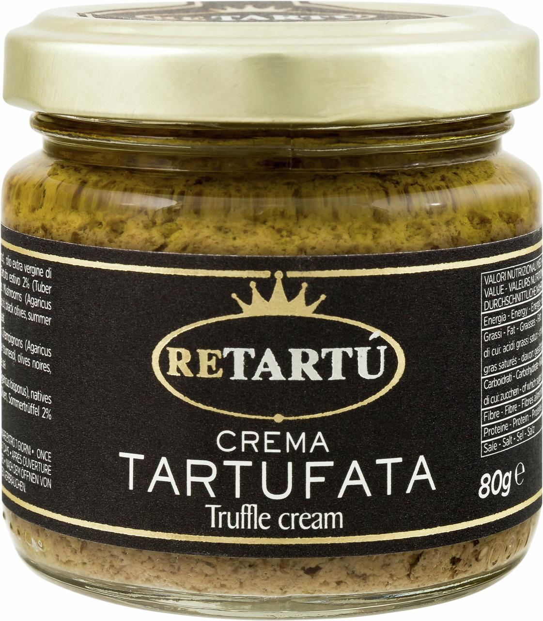 Крем Retartu трюфельный, 80 г представляет собой крем из шампиньонов и черного трюфеля. Этот продукт готов к употреблению. Грибной крем используется для бутербродов и начинок для закусок, первых и вторых блюд, омлетов и в качестве приправы для всех блюд с трюфелями. Он производится из натуральных ингредиентов. Его можно подать с хрустящими гренками или цельнозерновым хлебом. Крем придет на помощь, когда на готовку нет времени. Продается в удобной упаковке. Ее удобно взять с собой на работу. Грибной крем — это кладезь полезных веществ. В нем есть и белок, важный для костей, и различные витамины и минералы, активизирующие работу кишечника и улучшающие его микрофлору.